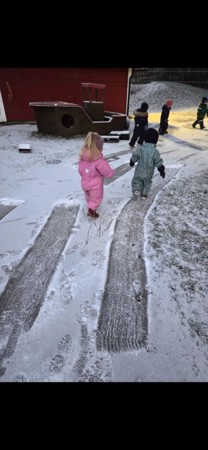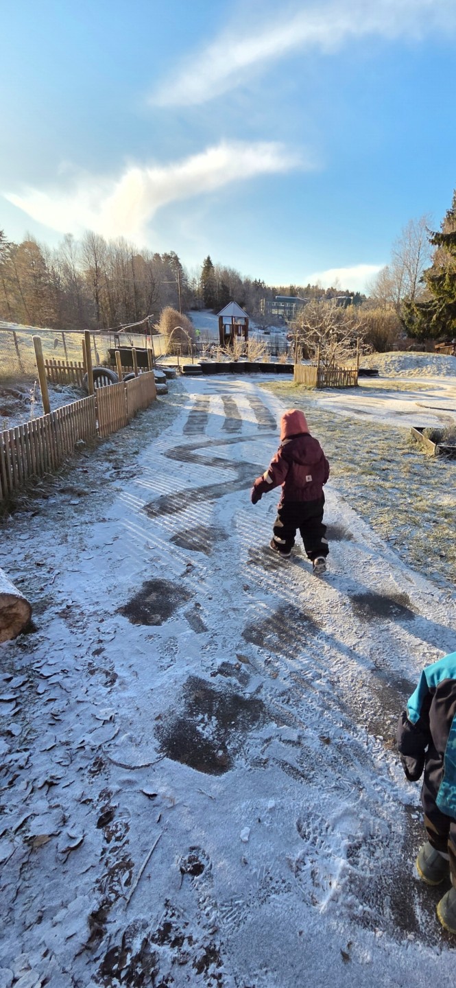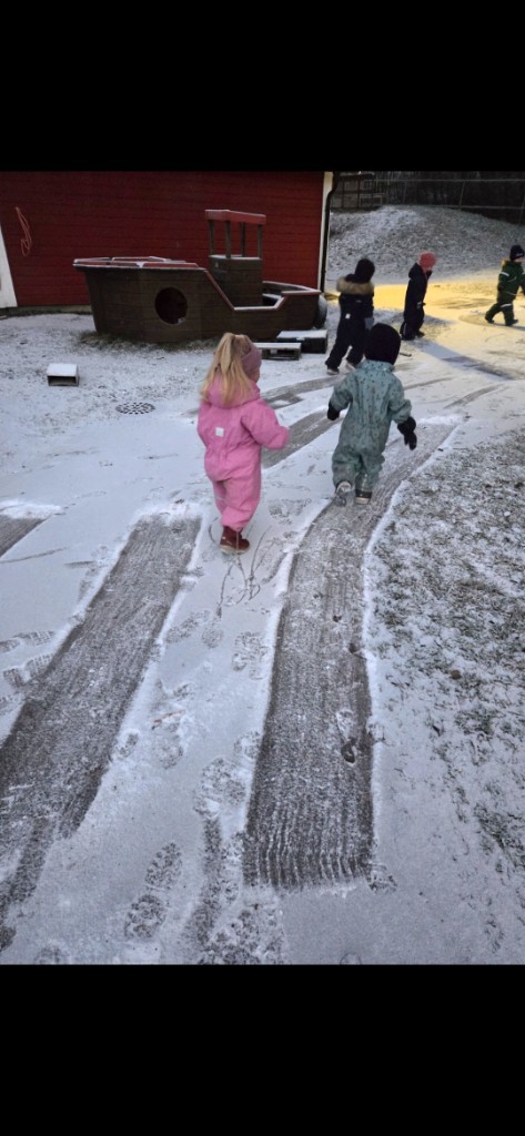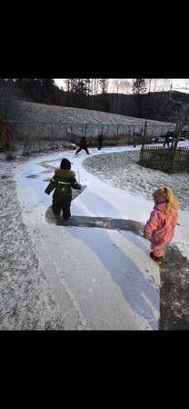 Da er det spennende og både se hvordan landskapet endrer seg, men også kunne bruke de lekemulighetene som oppstår. Som feks en hinderløype i snøen.